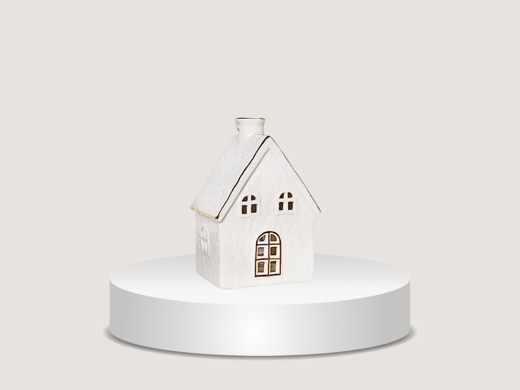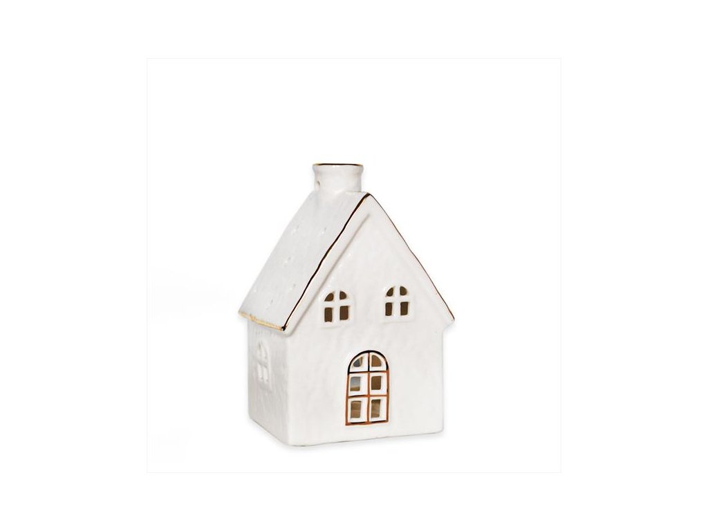 Domek svícen porcelán bílá 11 cm